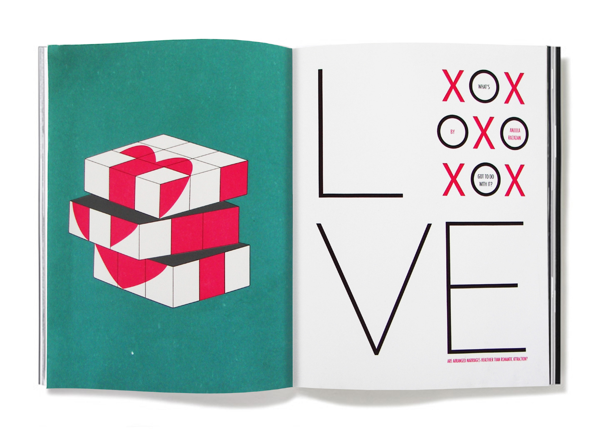 Modern love in the digital era isn’t necessarily about romance—in fact, it’s more strategic and has more common with traditional arranged marriages than we might think. Taking that cue, I designed this magazine concept using common games as visual elements.